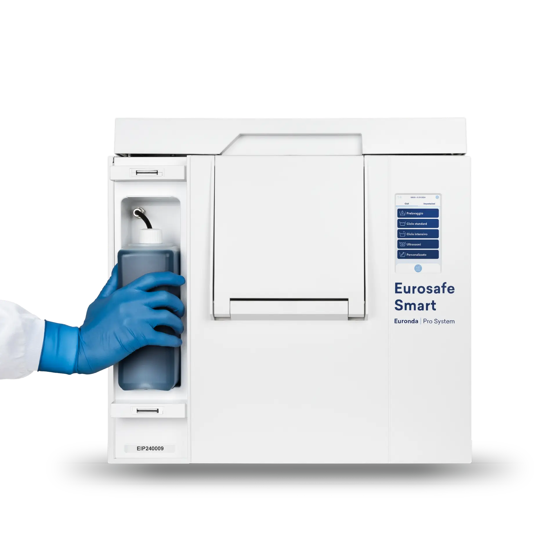 Pour garantir une efficacité maximale et réduire le gaspillage, Eurosafe Smart est équipé d’un doseur qui ajuste automatiquement le dosage du désinfectant en fonction du programme sélectionné et de la charge.