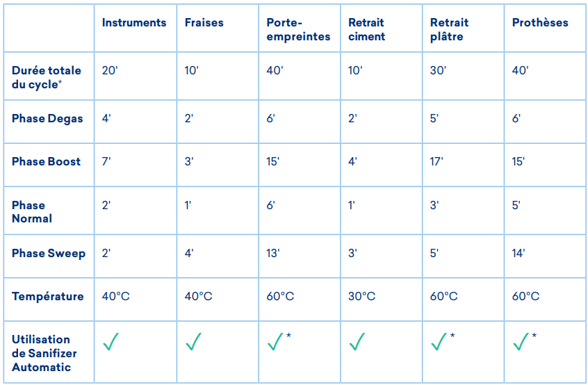 ** L’utilisation de Sanifizer Automatic dans ce programme est facultative.